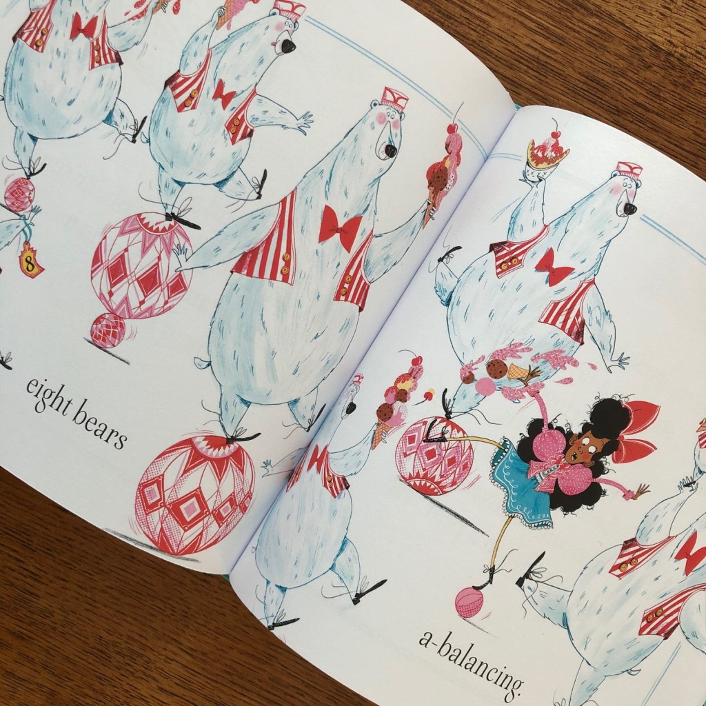This is a lovely book that we could share as a whole family with my one-year-old and my three-year-old. My eldest loved seeing all the stamps and the anticipation of what was coming next. Her favourite part was eight bears a-balancing!