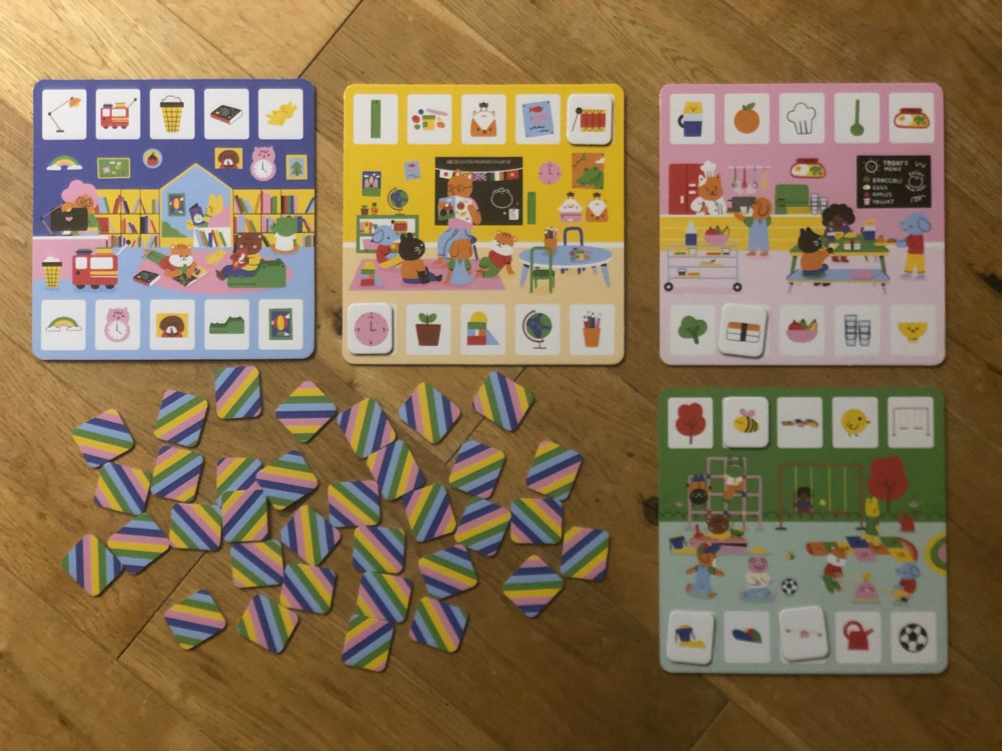 Who doesn’t love a game of bingo? This gorgeous version that has been designed by Jenny Lelong, better known as Niniwanted, is perfect to play with pre-schoolers. There are four boards that showcase a different aspect of school life: the classroom, the library, the dining hall and the playground. Each card has ten objects that you need to complete your card.