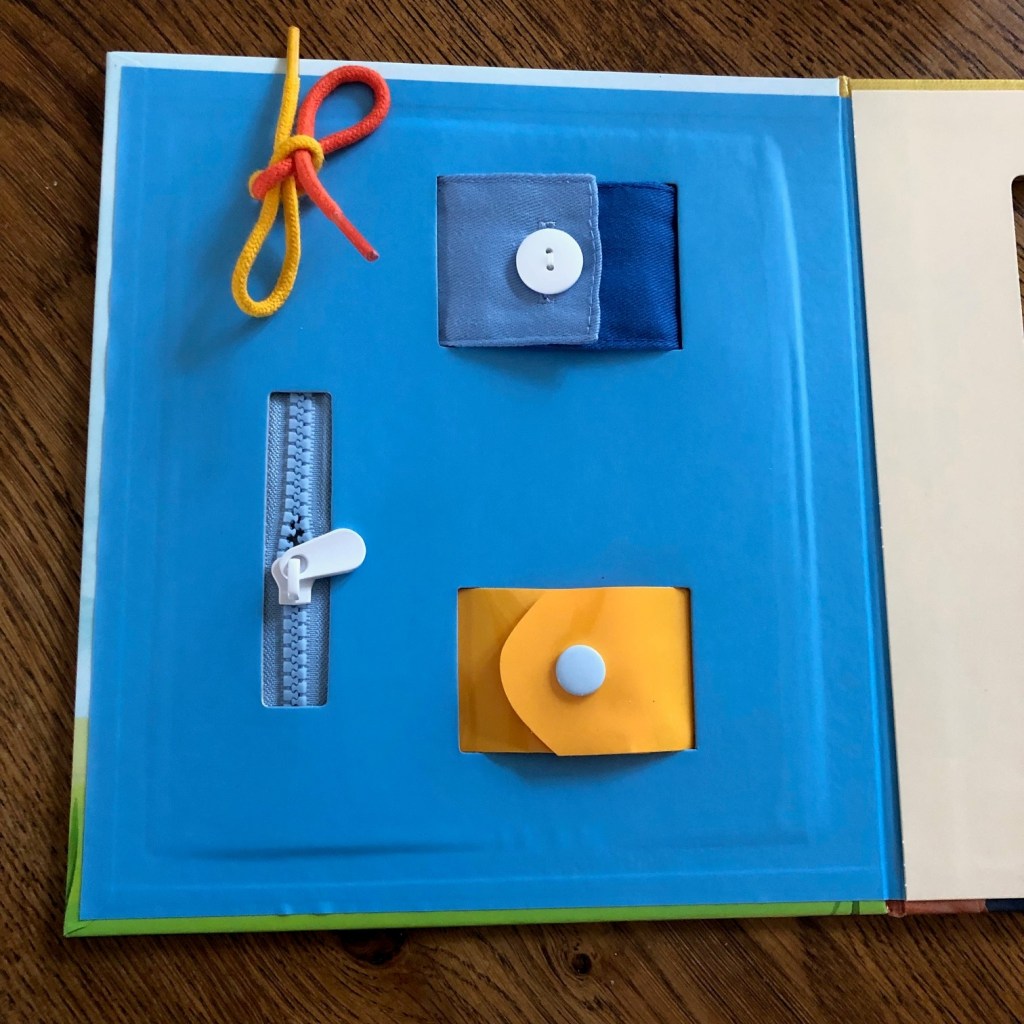 I never thought I would be able to find a book to help solve this problem, but here it is. Everyday Skills is part of the My World series and is a great way to help children learn these important skills in a fun way. Children can practice using a zip, snapping a popper and tying shoe laces. My daughter loves interactive books and Everyday Skills really helped her get to grips (pun intended!) with fastenings.