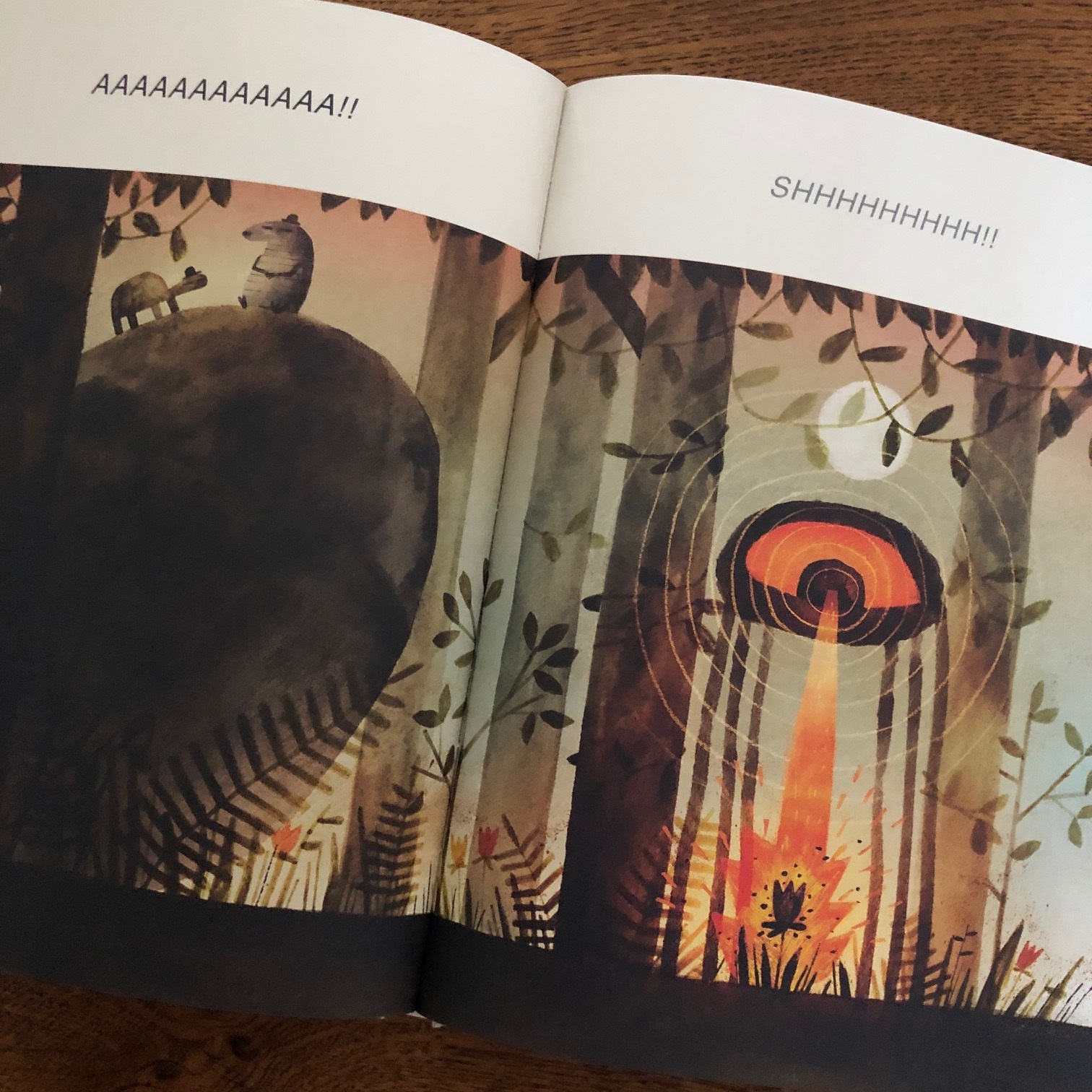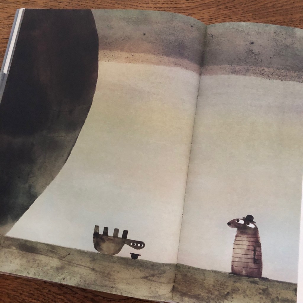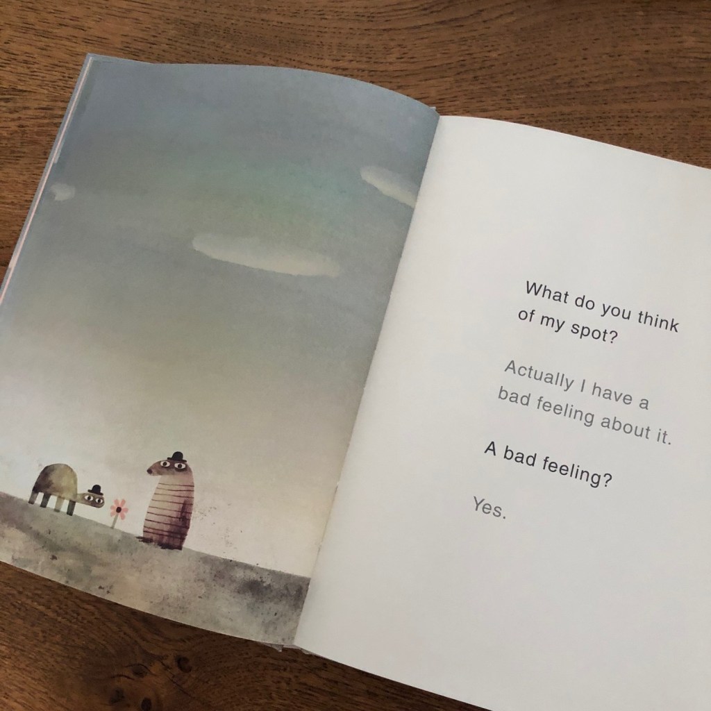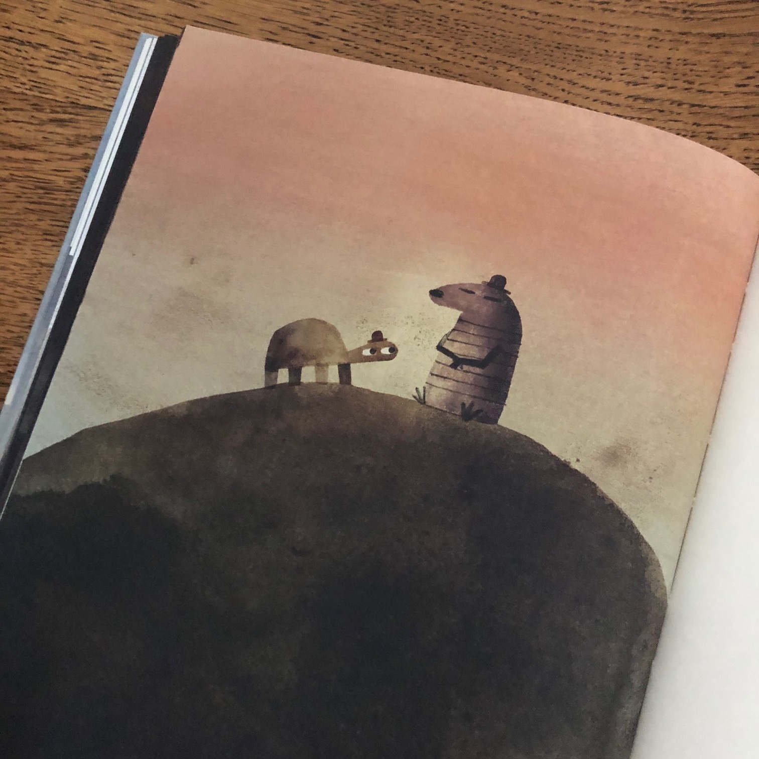 In part one, we meet Turtle. Turtle loves standing on his perfect spot. There is no reason to ever leave. Except right above Turtle’s favourite spot, is a rock in the sky. Turtle invites his friend Armadillo to join him on his favourite spot, but Armadillo has a bad feeling. And he’s right.