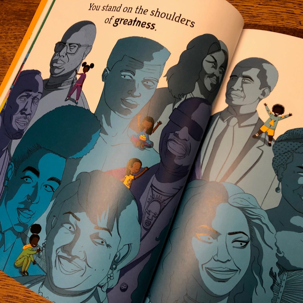 There are some books that you just KNOW are going to be special from the moment you hear about them. Hey You! is one of those books. It is a celebration of inclusive storytelling on so many levels. This is Dapo’s first authored picture book, and it is the first ever picture book to feature 18 Black illustrators. Alyissa Johnson created the typography and the other 17 illustrators created a spread each.
