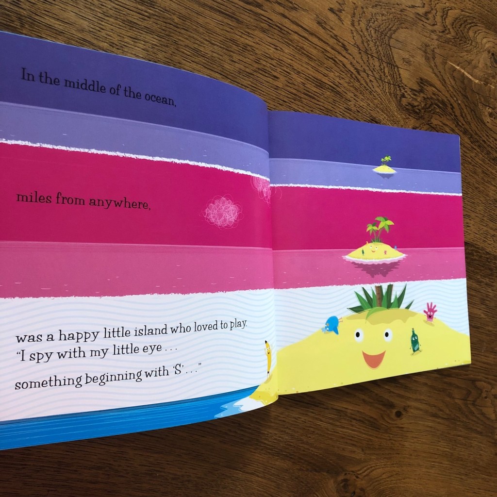 In the middle of the ocean, miles from anywhere is a living Island who loves to play I Spy with their friends… just like my daughter! When a curious chest washes up on the Island, everyone is wondering what could be inside. What follows is a sunny adventure of fun and friendship.