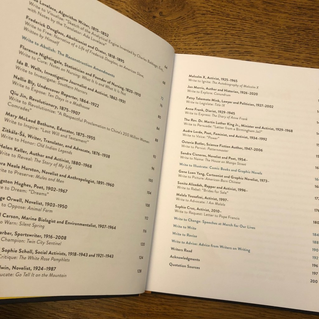 Each biography has a writing caption: Write to Explain (Wang Zhenyi); Write to Persuade (Martin Luther King); Write to Read (Louis Braille). I love that the book takes these inspirational writing features one step further by encouraging children to try writing challenges of their own, including pages to help them with their own forms of writing, like Write to Revise.