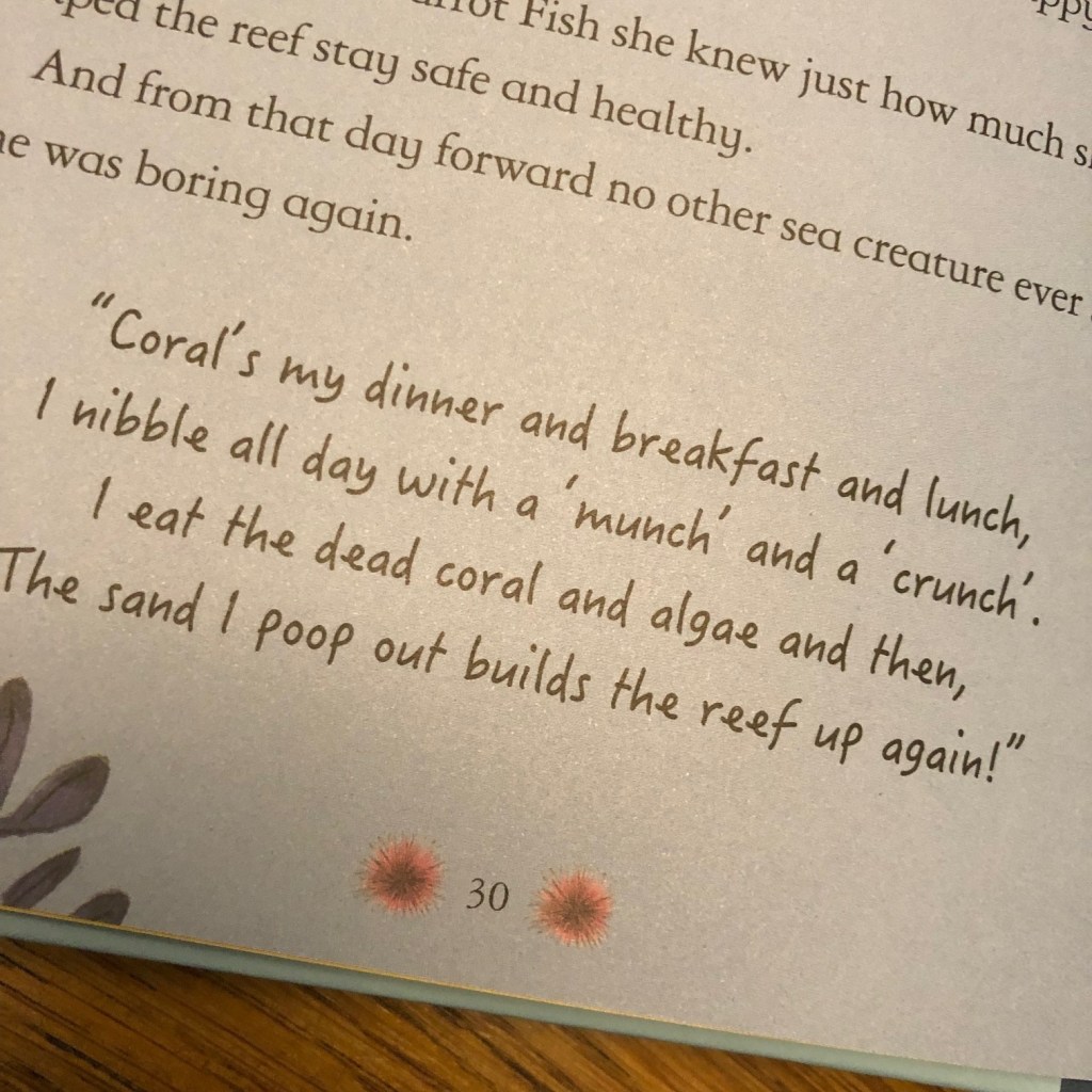 Each story is beautifully illustrated with fishy facts delicately woven into the tales. We love the little rhyming verse at the end of each story. One of our favourite stories was Keep Nibbling, Parrotfish.