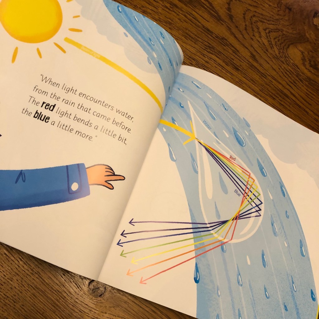 This ingenious rhyming tale is laid out in that all too familiar conversation style of a child asking their parent “why?” over and over again. The dad explains the science behind the rainbow in more and more detail. The illustrations are fantastic and scientifically accurate which made my heart sing. Why? Rhyming Guide to Rainbows is clever, relatable, accessible and absolutely BRILLIANT! We LOVE this book!