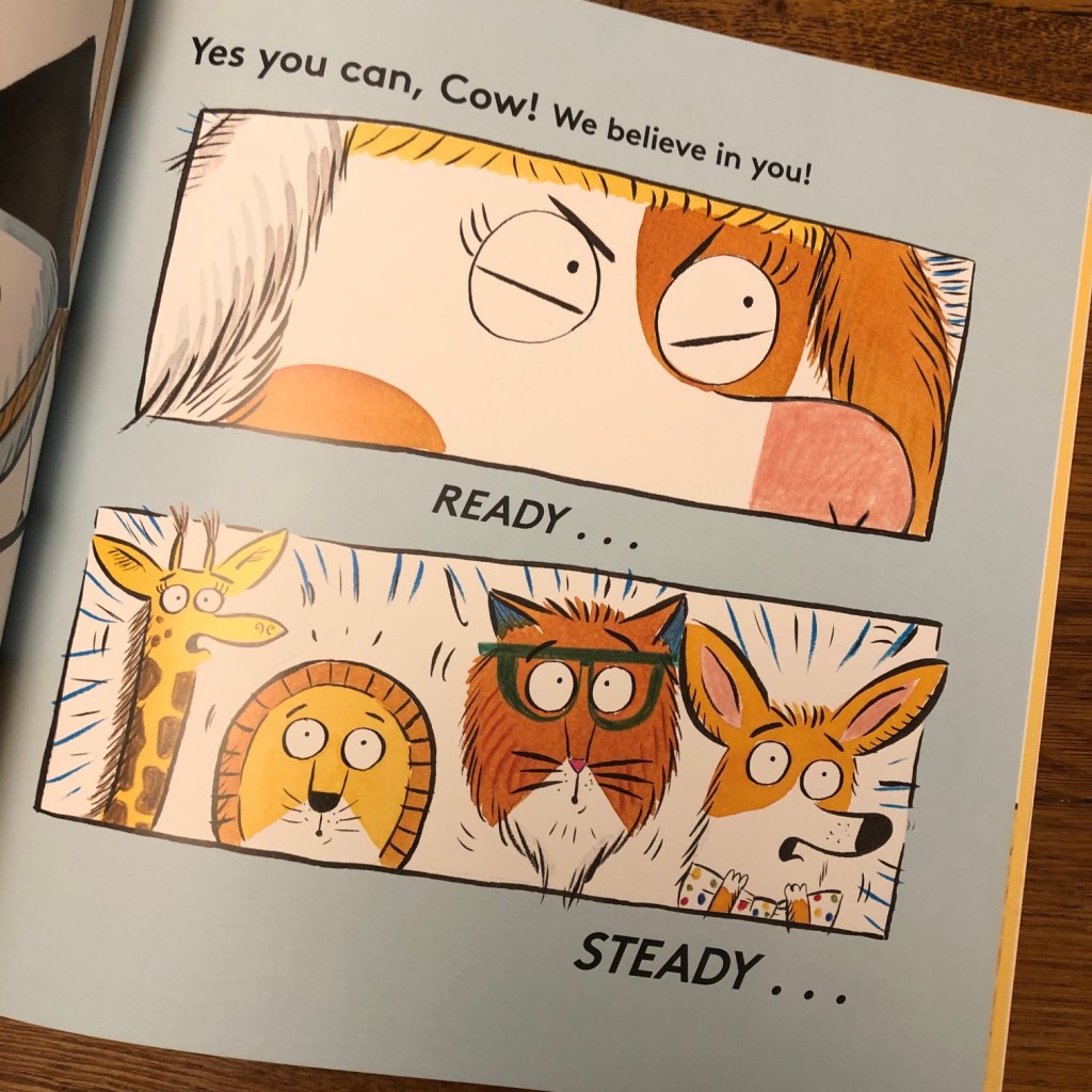 Told through the quirky voice of the show’s narrator and director, this picture book will have you laughing out loud whilst simultaneously tugging at your heart strings. Rikin’s illustrations are triumphant, and fit the story perfectly. We were rooting for cow and recognised those relatable nervous feelings, and the weight of expectation on Cow to deliver the perfect jump. The curtain’s almost up and the audience are waiting. Can Cow overcome her fear of failure and become the star of the show?