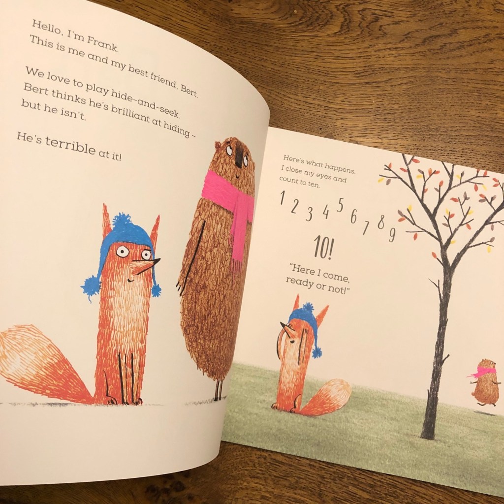 Celebrating the joy of playing hide-and-seek this clever picture book about friendship had us laughing out loud. Frank and Bert are the best of friends and they LOVE to play hide and seek. But Bert the bear isn’t quite as good at hiding as he thinks he is . . . and Frank ALWAYS wins! Even when Frank counts to 100!