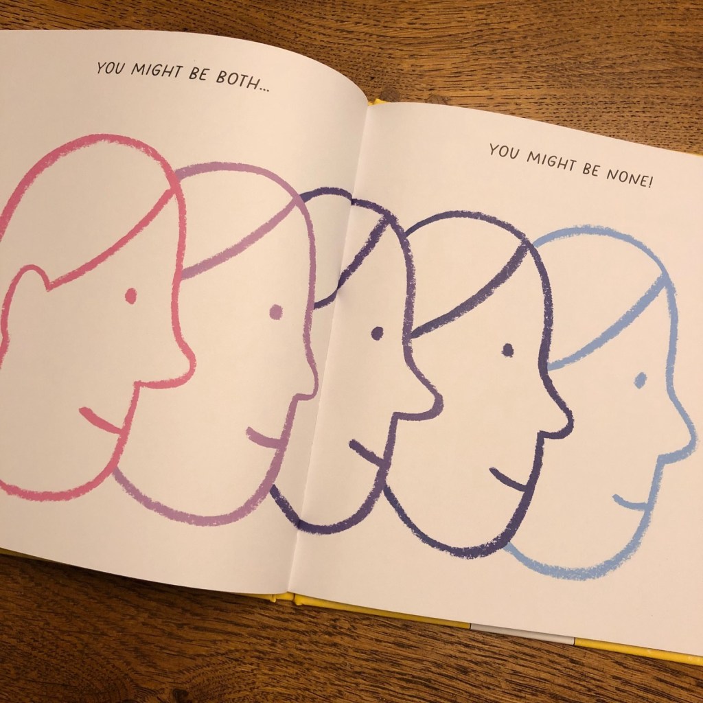 The gender binary can impact children even before they are born. With baby gifts being “blue for a boy” and “pink for a girl”. Through the bold and contrasting illustrations children are encouraged to question the binary, and to celebrate their freedom of choice.