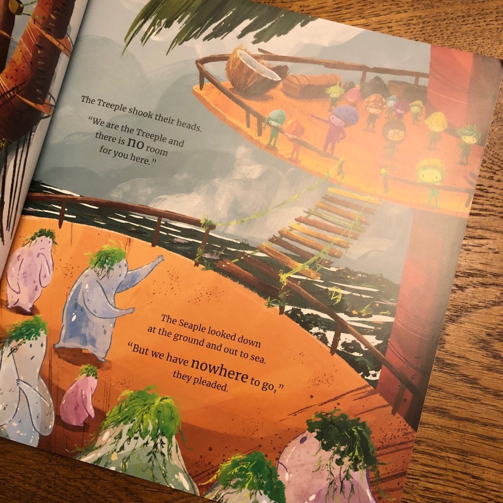 My daughter and I were delighted to discover The Last Seaweed Pie this month. The Sea-ple live in the ocean and the Tree-ple live in the jungle. On paper their worlds should never collide, but they do in the most unfortunate way, but perhaps something good will come of it…