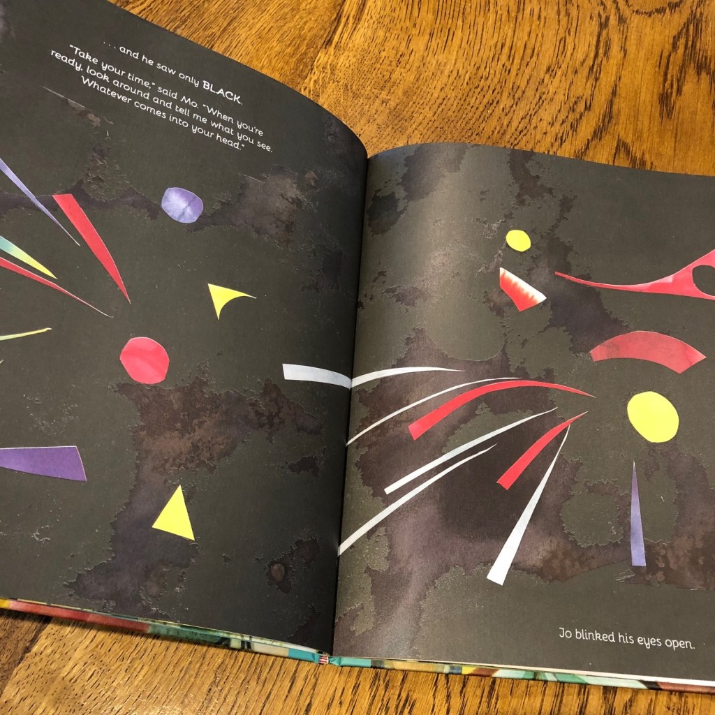 This exquisite picture book feels like a piece of art. In every spread, we get a glimpse into the world the way the Mo the artist sees it. But Jo can’t see the world the way Mo does no matter how hard he tries.