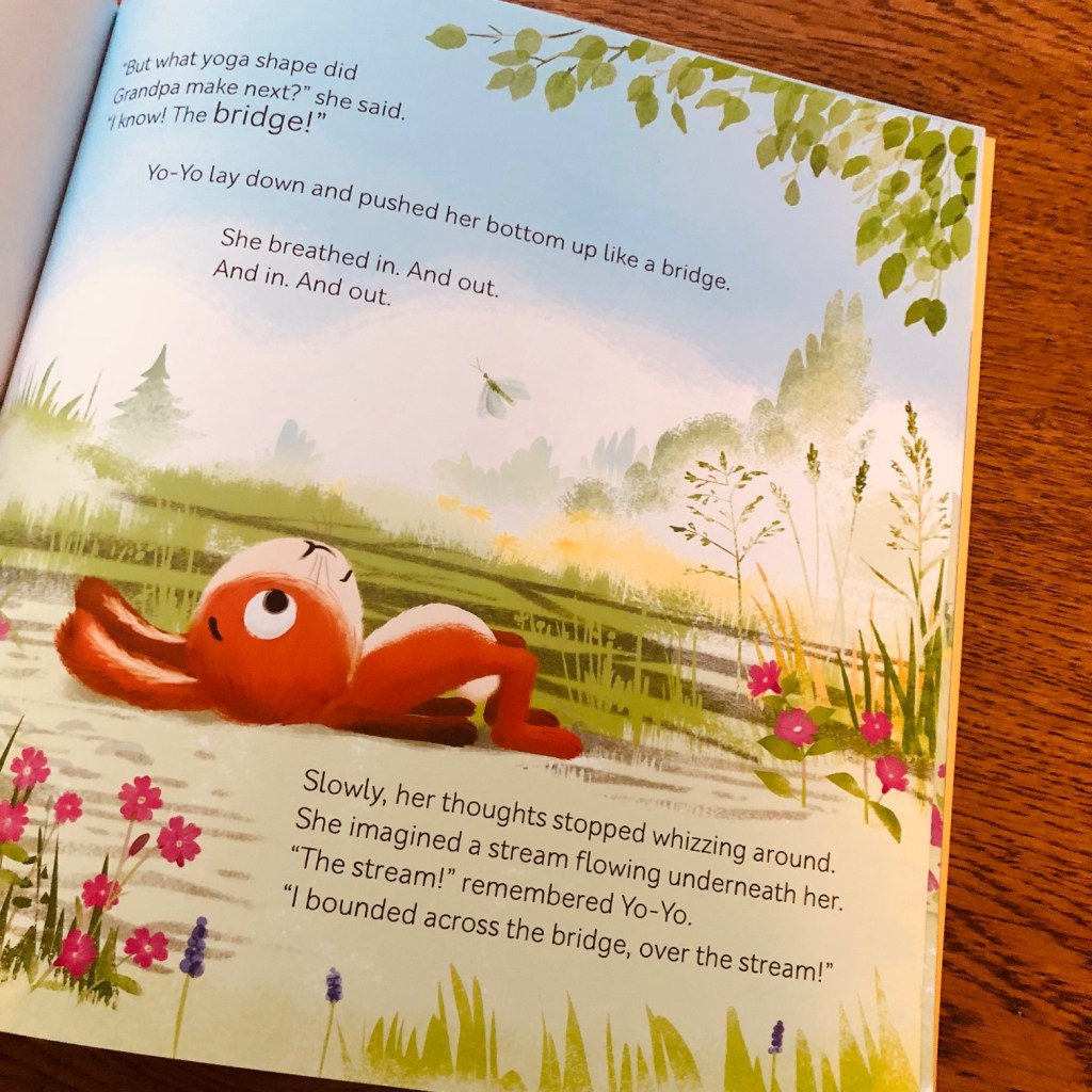 In the story, Yo-Yo becomes lost in the woods and (spoiler alert) she remembers the yoga her Grandpa had taught her. By following through the different poses, she gradually finds herself feeling more calm and able to remember the way home.