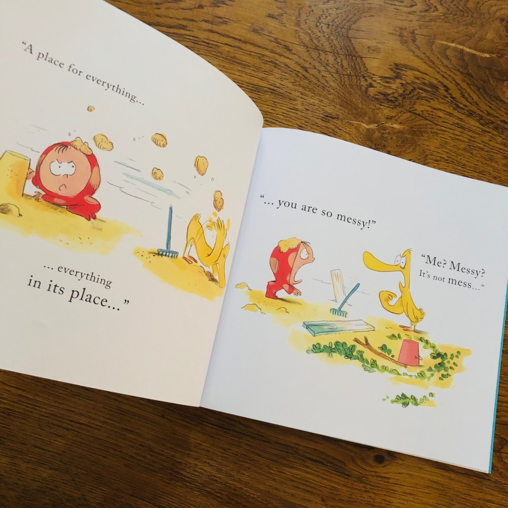 Dot and Duck are best friends, but Dot hates mess and Duck hates tidy. At the beach, Dot carefully lays out her towel and picnic… and Duck digs a big hole covering everything with sand! SO messy! But can they find the perfect balance being tidy and messy, or does the ocean have other plans…