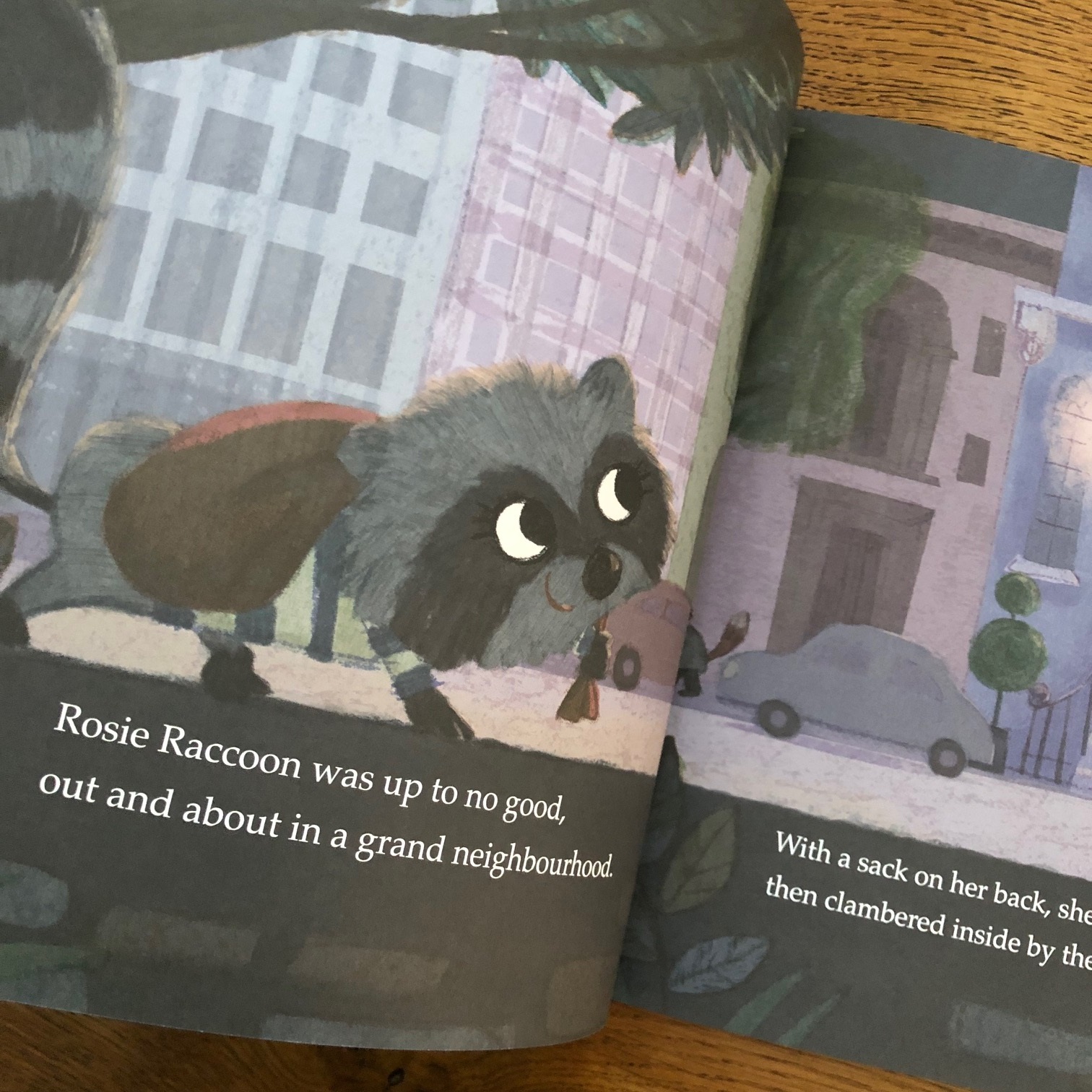 In this crafty, sneaky picture book, Rosie Raccoon is up to no good, out and about in a grand neighbourhood. But she needs to watch out. The police are after her, and it’s not long before she’s feeling the furry arm of the law…