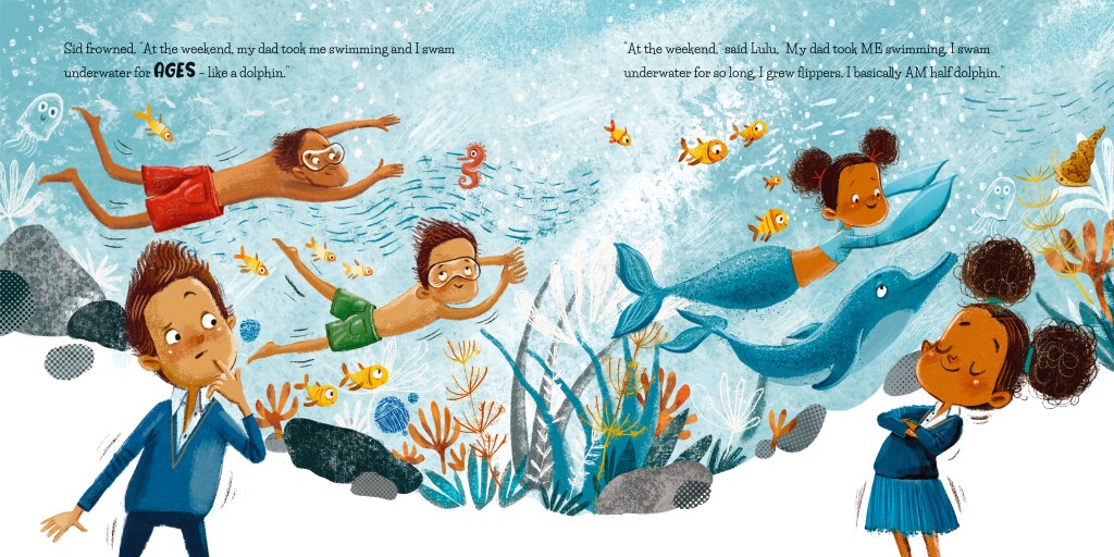 I was asked this recently, and I picked a particular point in the story arc and also a favourite illustration. So, this time I’ll give a favourite line – it’s the description of Sid’s fateful lie careering around his mouth before fighting its way out into the world: “Whoosh! It whizzed up his throat and bounced around his mouth. Sid tried to lasso it with his tongue but BAM-BAM-BAM it hammered against his teeth.” Hopefully, this gives readers a sense of Sid’s inner turmoil. He knows he shouldn’t unleash that fib, but…