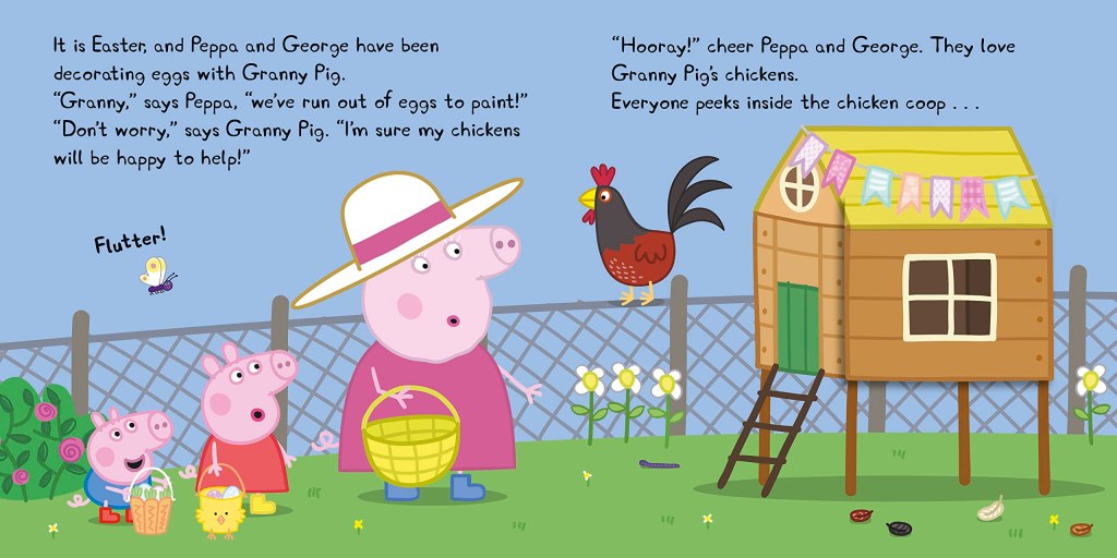 Peppa and George are celebrating Easter with Granny and Grandpa Pig, but what happens when Granny Pig’s chickens decide to go on an Easter adventure?